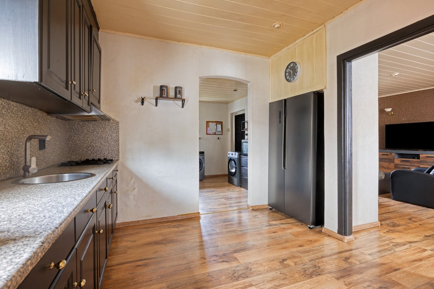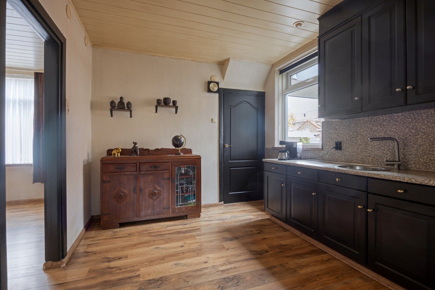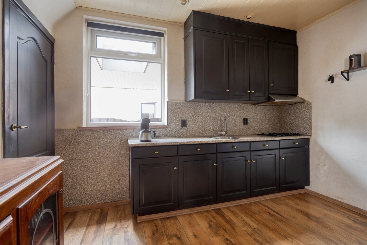 Aparte leefkeuken met keuken in een lengteopstelling met gaskookplaat en afzuigkap. Praktische halfverdiepte kelder; ideaal voor de voorraad. In het verlengde van de keuken is de bijkeuken gelegen met witgoedaansluitingen en achterdeur naar de tuin. Vanuit de bijkeuken toegang tot de badkamer begane grond met douchecabine en wandmeubel met wastafel en een aparte toiletruimte met hangend toilet.