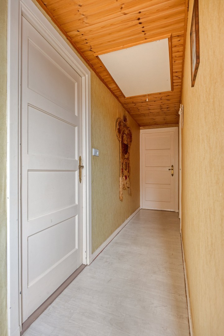 Origineel waren er 4 slaapkamers op de 1e verdieping. Twee van deze kamers zijn samengevoegd door een hele grote ouderslaapkamer. De ruimte is aanwezig om de 1e verdieping in te richten met 3 slaapkamers en een badkamer. De huidige slaapkamers zijn afgewerkt met een laminaatvloer, deels behangen wanden en een granolwanden en een gestuct plafond. Diverse originele kenmerken zijn nog aanwezige zoals de fraaie paneeldeuren en de mooie rondingen bij de dakkapellen.