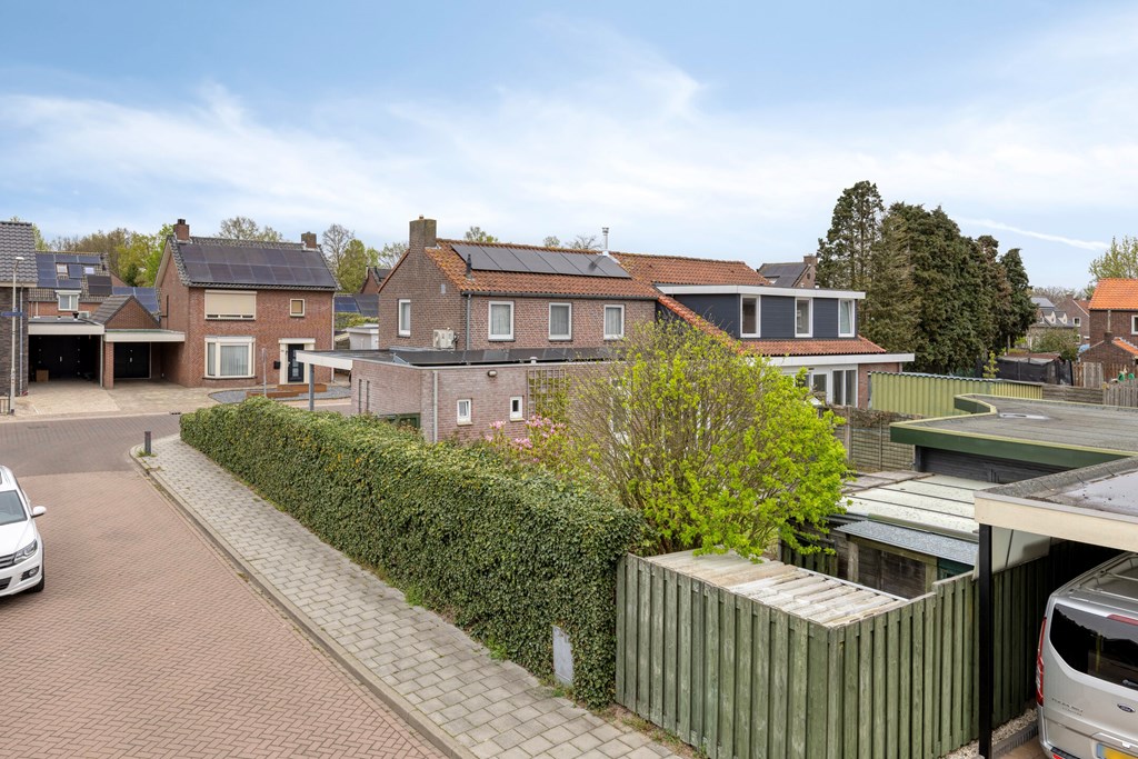 Extra brede oprit zodat er twee auto’s naast elkaar geparkeerd kunnen worden. Verder is er een carport aanwezig en een extra brede achterom.