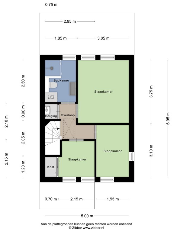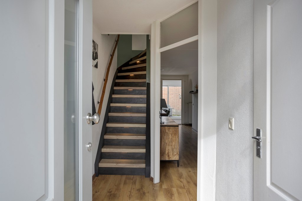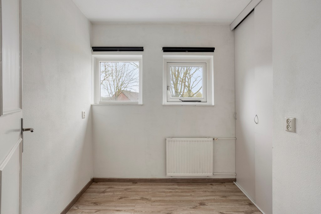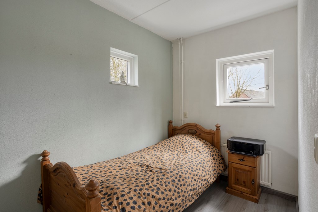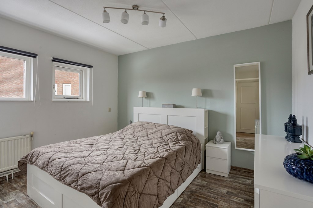 De overloop geeft toegang tot 3 slaapkamers en de moderne badkamer. De slaapkamers zijn afgewerkt met een laminaatvloer, stucwerkwanden en een spuitwerkplafond. De moderne badkamer is in 2023 vernieuwd in is ingericht met een inloopdouche, wandmeubel met wastafel, hangend toilet en een designradiator. Verder zijn hier ook de witgoedaanslutingen aanwezig. Vanuit de overloop via een vlizotrap toegang tot de zolderverdieping in gebruik als bergruimte.