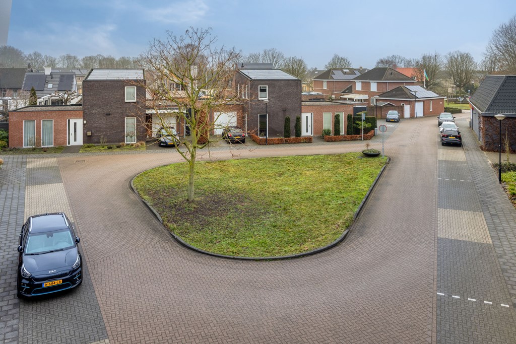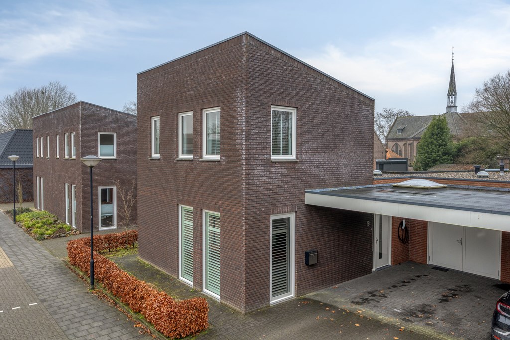 Oprit met carport. Entree via de zijkant van de woning. Er is een achterom aanwezig via de linkerzijde naast de woning.