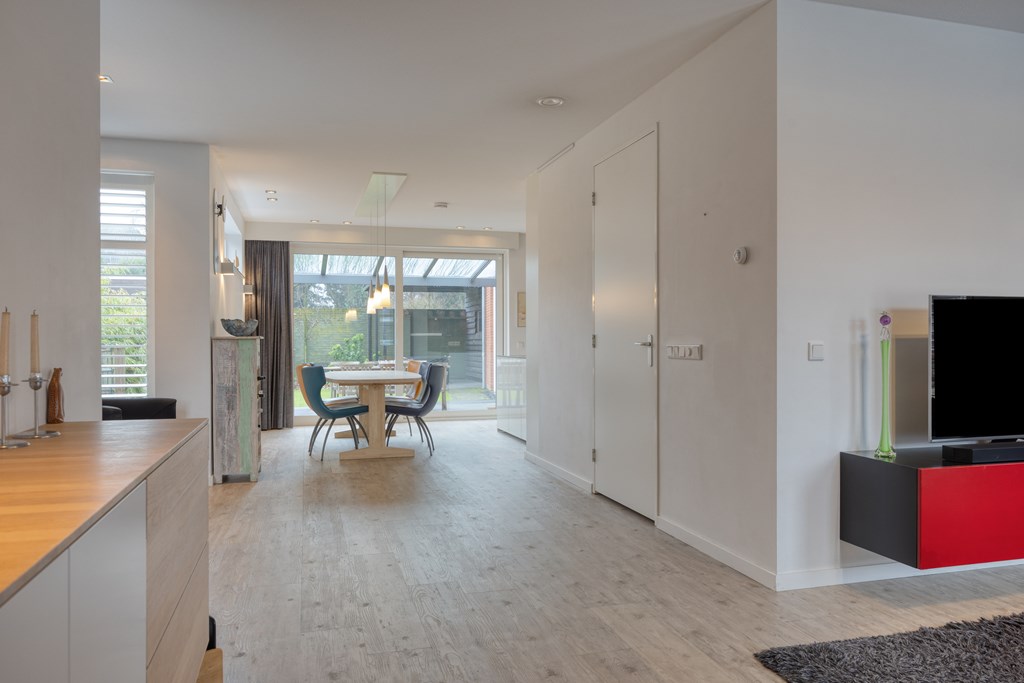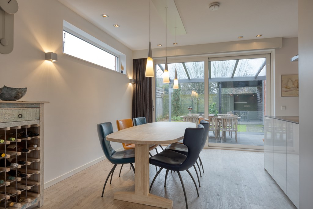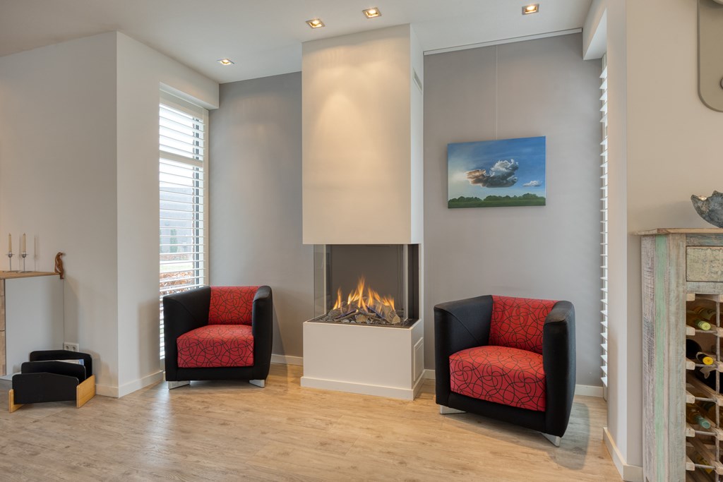 Mooie en ruime woonkamer met enorm veel lichtinval dankzij de vele raampartijen. Het zitgedeelte is gelegen aan de voorzijde van de woning met meer dan voldoende ruimte voor het creëren van een gezellige zitkamer. Bij de erker aan de zijkant van de woning is een sfeervolle gashaard gesitueerd; een perfecte leeshoek lekker bij de kachel. De gehele begane grondvloer is voorzien van vloerverwarming.