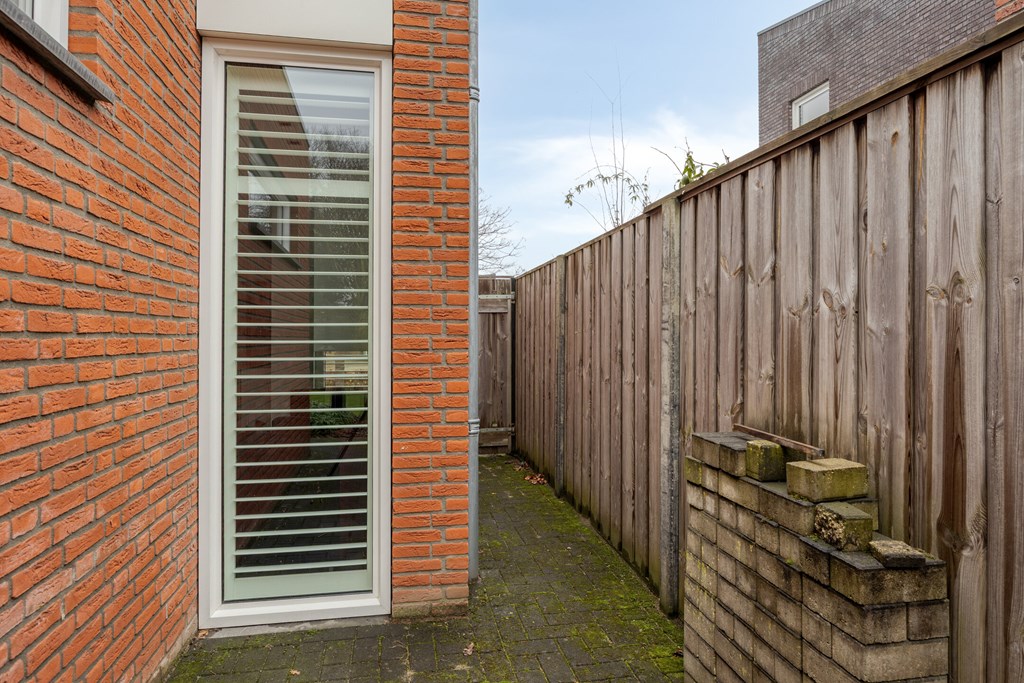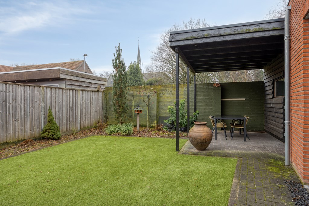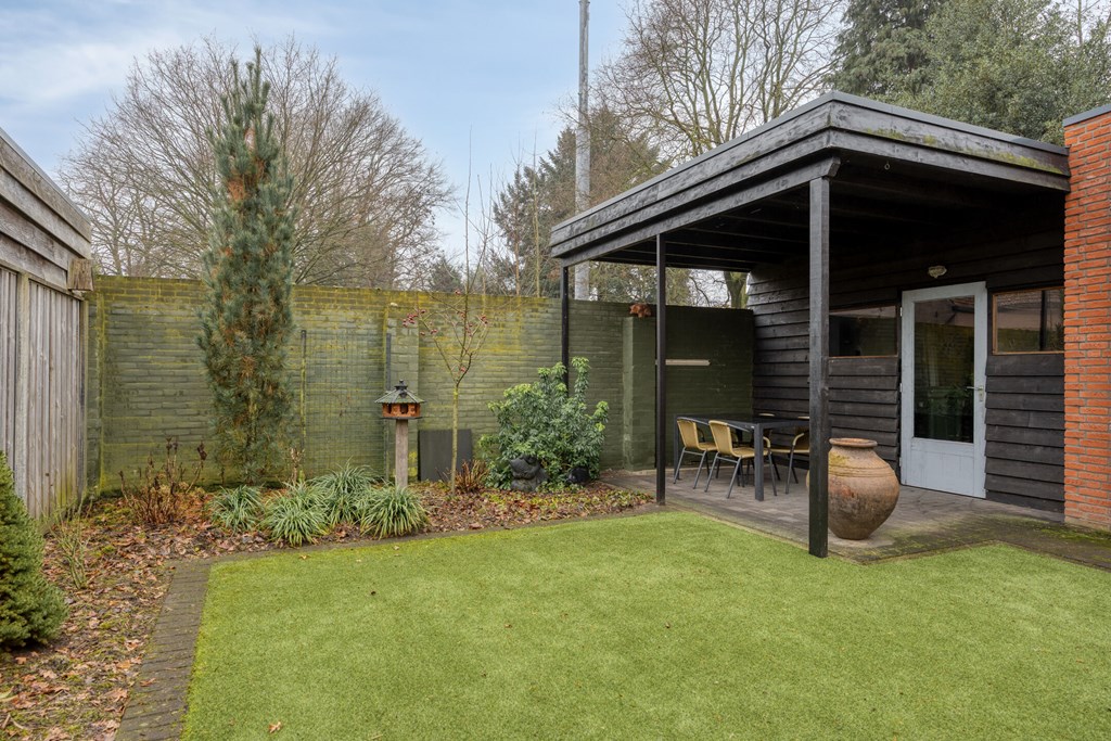Sfeervolle achtertuin ingericht met bestrating, kunstgras gazon en borders met diverse beplantingen. Overkapping tegen de achtergevel van de woning met zonwering. Er is een achterom aanwezig via de zijkant van de woning. Daarnaast is er een ruime buitenberging aanwezig op de achterzijde van het perceel ( ca. 4m x 4,23m). Een ideale ruimte voor opslag of om te klussen. Aan de voorzijde van de buitenberging is ook nog een extra overkapping gerealiseerd. De achtertuin is gelegen op het zuiden en de tuin biedt zeer veel privacy en vrijheid.