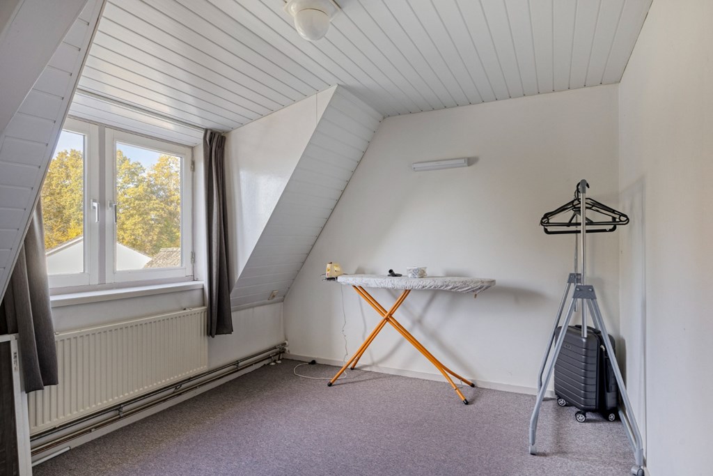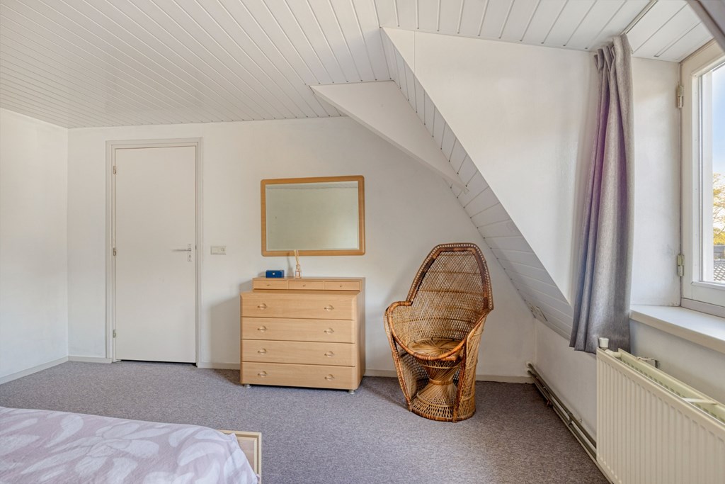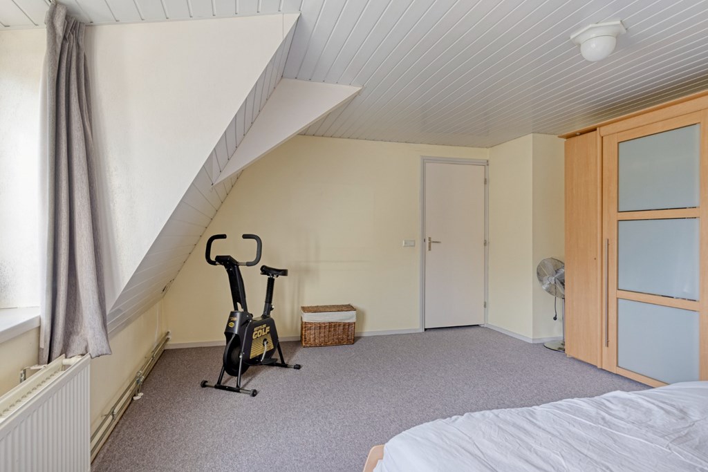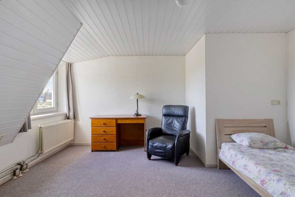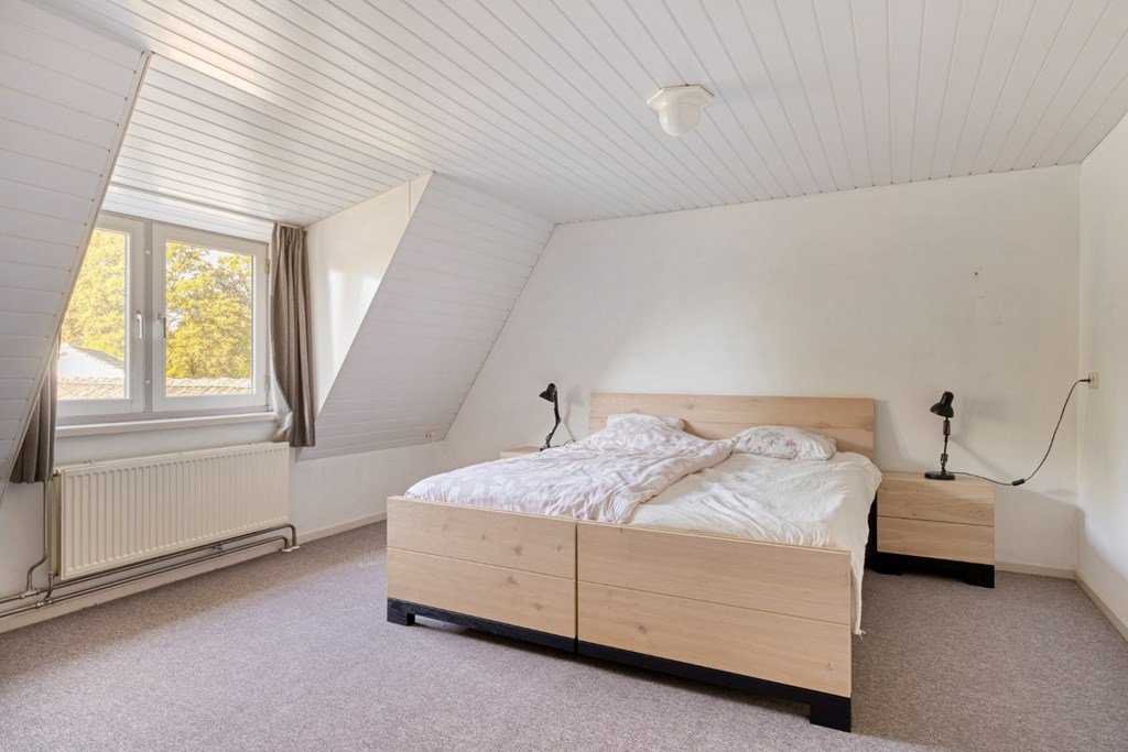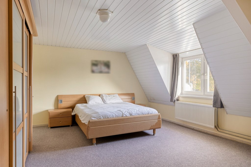 Via de brede trapopgang toegang tot de 1e verdieping. De overloop geeft toegang tot 4 ruime slaapkamers en de toiletruimte met hangend toilet en CV-opstelling (2016). Dankzij de dakconstructie zijn er legio mogelijkheden om de bestaande wanden op de 1e verdieping te verplaatsen om naast de 4 ruime slaapkamers en het toilet nog een nieuwe badkamer te realiseren. De slaapkamers zijn nu afgewerkt met vloerbedekking, gestucte wanden en een kunststof schroten plafond. Via een vlizotrap toegang tot de bergzolder in gebruik als opslagruimte.