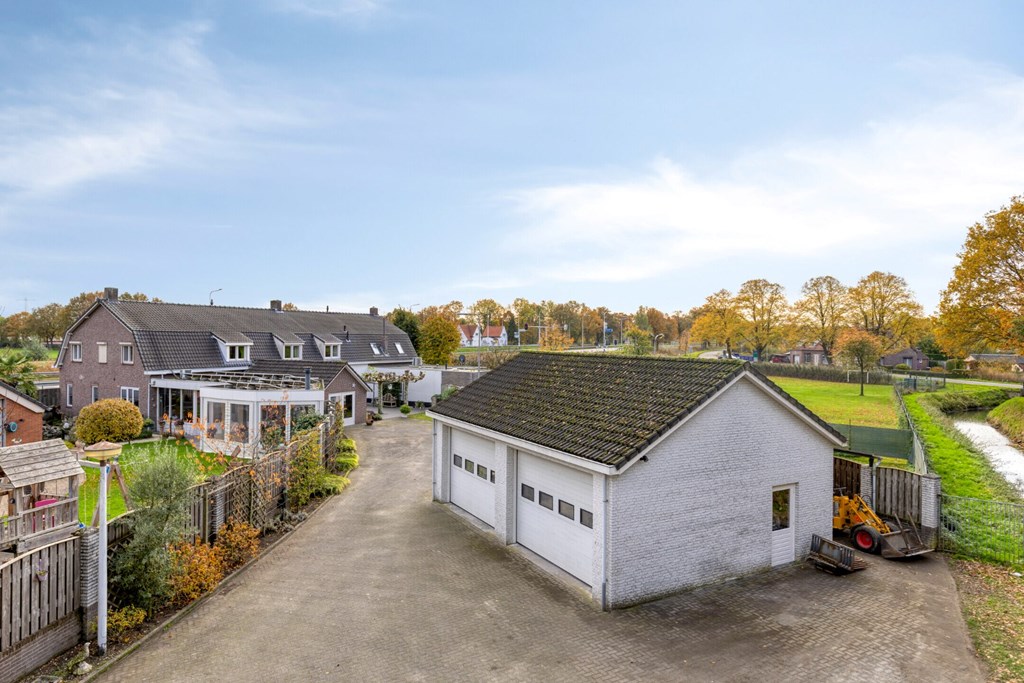 Via de inrit op eigen grond vanaf de Kanaaldijk Zuid (stukje verderop) is de tuin met garage te bereiken. Deze inrit is geheel verhard met betonklinkers en is uitermate geschikt om met b.v. een werkbus of camper de moderne garage te bereiken.