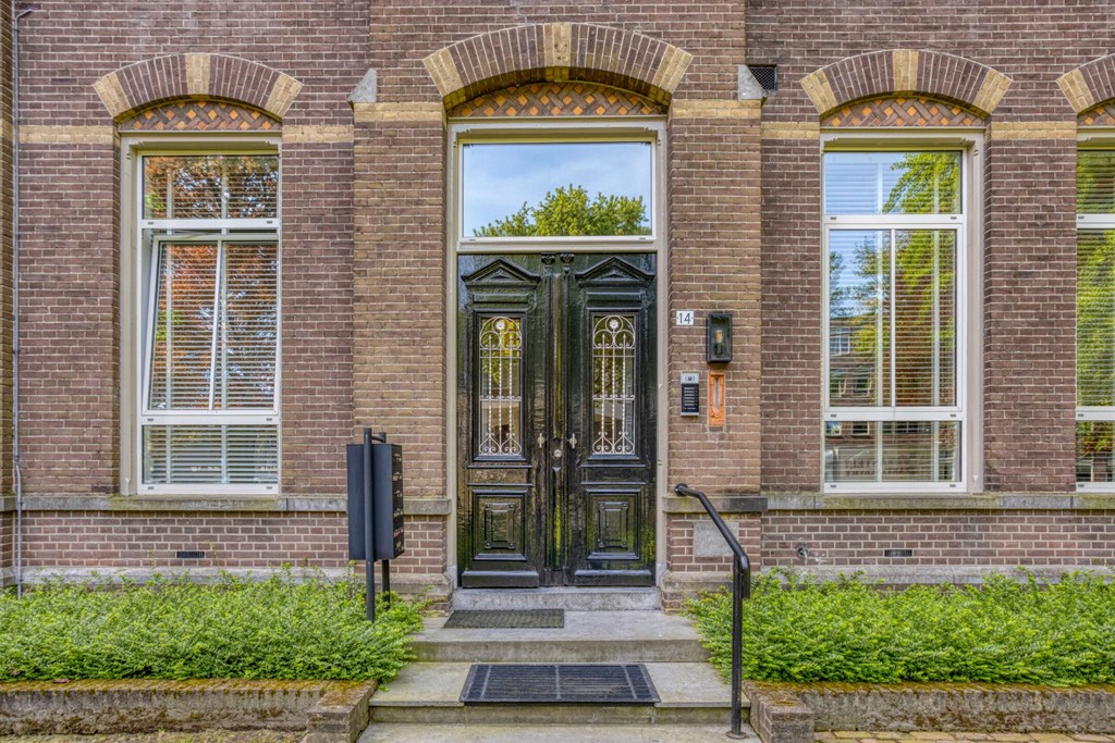 De prachtige statige entree geeft toegang de lift, de kelder en tot de trapopgang naar de verdiepingen. Diverse originele kenmerken zijn tijdens de grote renovatie behoudt gebleven zoals de ornamenten tegen het plafond en het glas-in-lood bij de trapopgang.