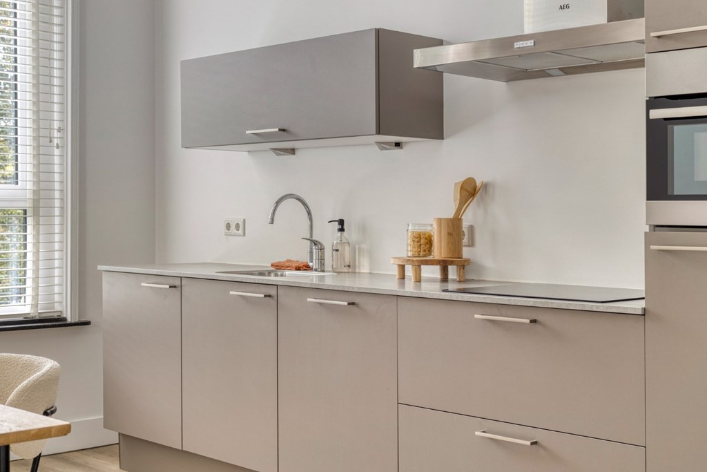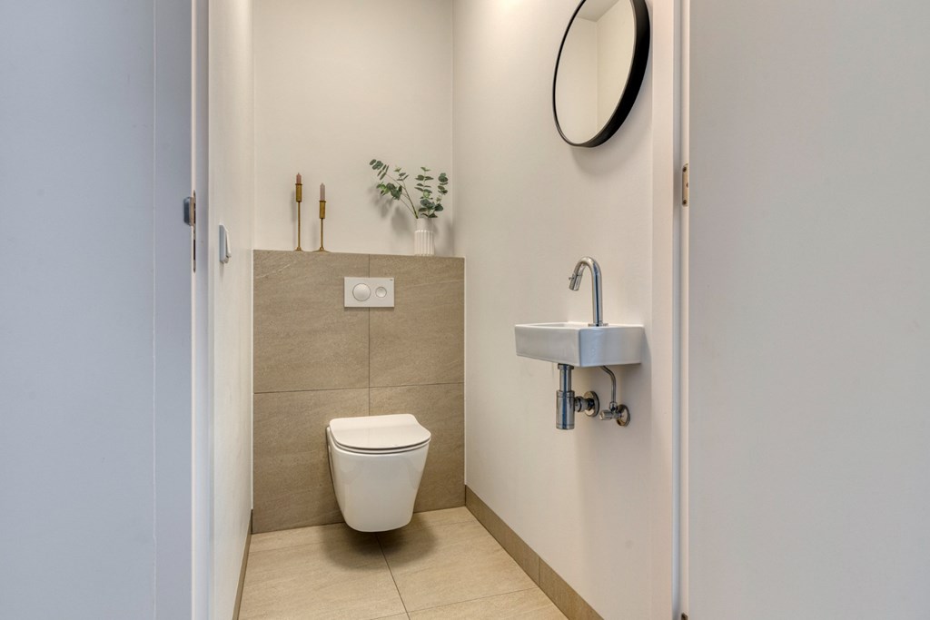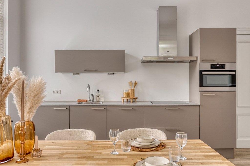 Fantastische royale leefkeuken met keuken in een lengteopstelling ingericht met een inductiekookplaat, afzuigkap, vaatwasser en koelkast. Er is ruimte voor het plaatsen van een grote eettafel voor 8 personen. Er is een dubbele bergkast aanwezig; ideaal voor voorraad. Dankzij de aanwezige raampartijen komt er veel licht binnen en heeft u een prachtige uitzicht op de Kerkstraat en de voortuin van de pastorie. Open verbinding naar de woonkamer gelegen aan de achterzijde van het pand. Bij de doorgang is de toiletruimte gerealiseerd met hangend toilet en fonteintje.