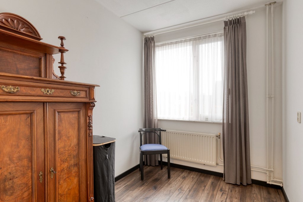 De overloop geeft toegang tot 3 slaapkamers en de recentelijk gerenoveerde badkamer. Deze ziet er erg fraai uit en is ingericht met ligbad, inloopdouche, hangend toilet en wandmeubel met wastafel. De slaapkamers zijn afgewerkt met een laminaatvloer en deels met een pvc-vloer. De ouderslaapkamer biedt voldoende ruimte voor een grote kledingkast. Via de vaste trap vanuit de overloop toegang tot de zolderverdieping.