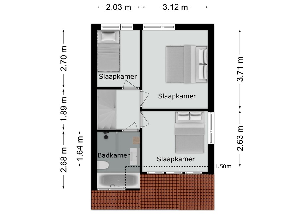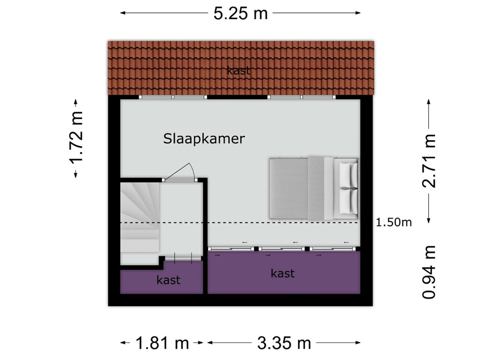 • Dankzij de dakopbouw op de zolderverdieping is er een mooie grote slaapkamer ontstaan op de zolderverdieping.