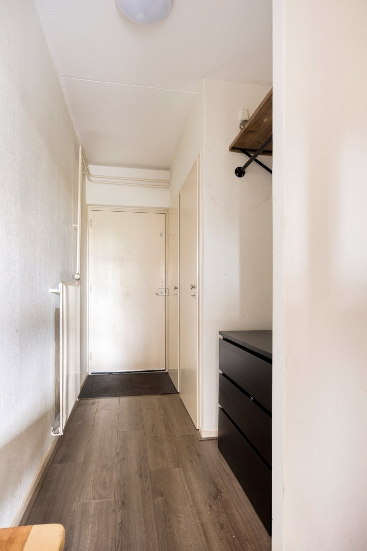 Via de galerij toegang tot het appartement. Hal met meterkast en garderobehoek. Vanuit de hal toegang tot de ruime slaapkamer met ruimte voor een groot bed en een kledingkast. Vernieuwde toiletruimte met hangend toilet en fonteintje. Moderne badkamer met ligbad-/douche combinatie en wandmeubel met wastafel.