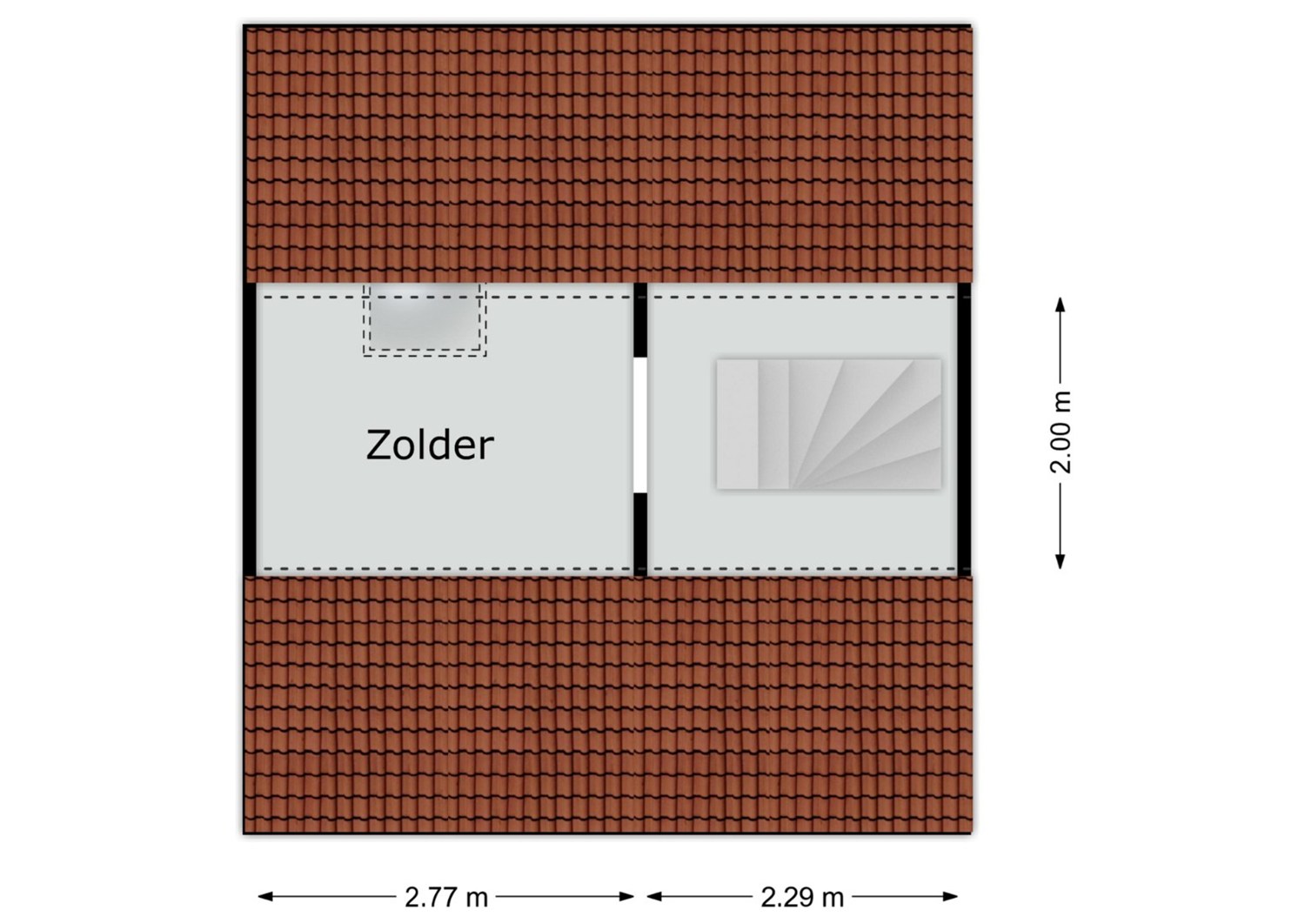 Vaste trap naar de zolderverdieping met voorzolder en extra kamer voorzien van een raam in de zijgevel. Vanuit de voorzolder toegang tot de CV-ruimte met CV-opstelling (2011).